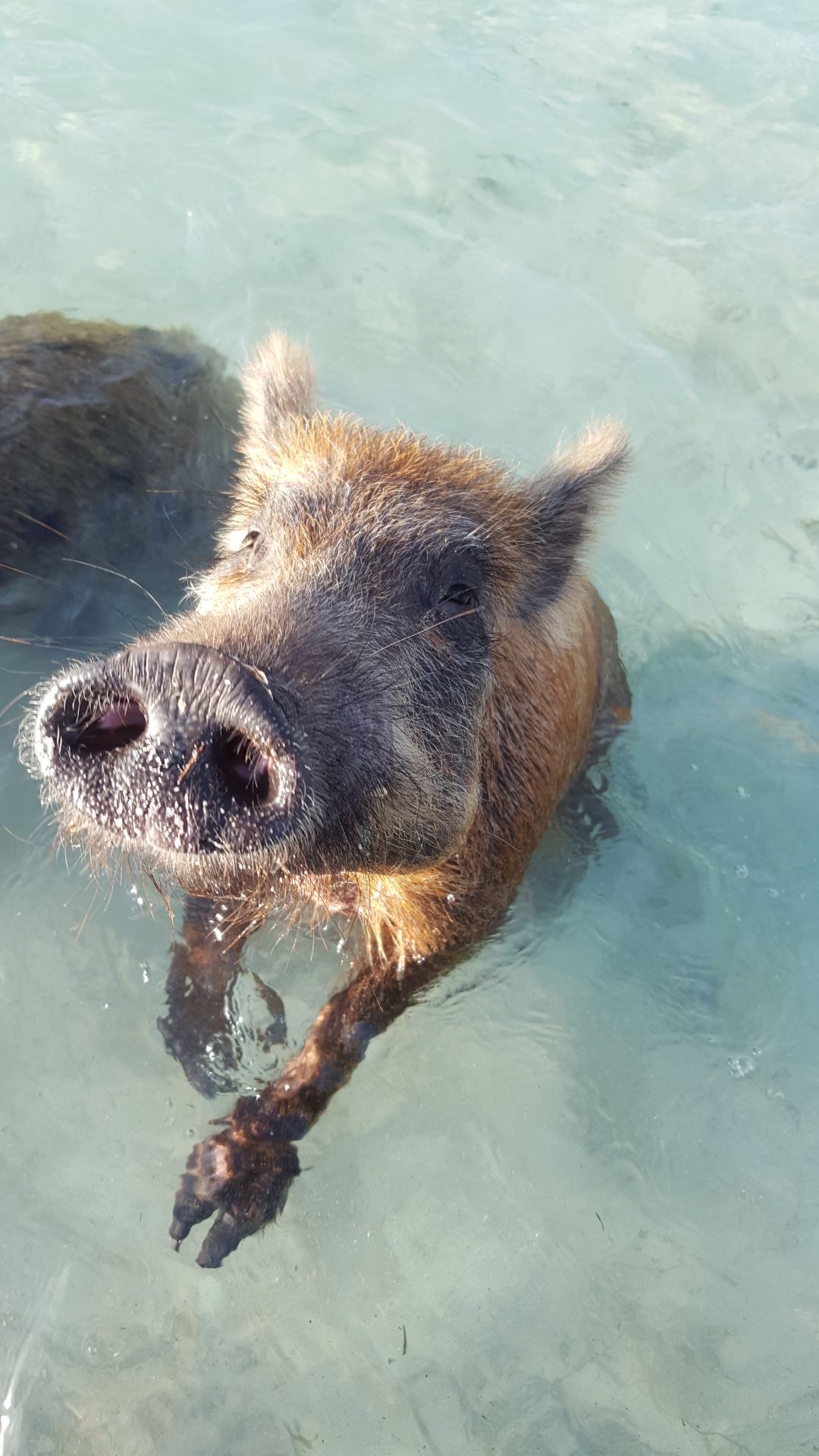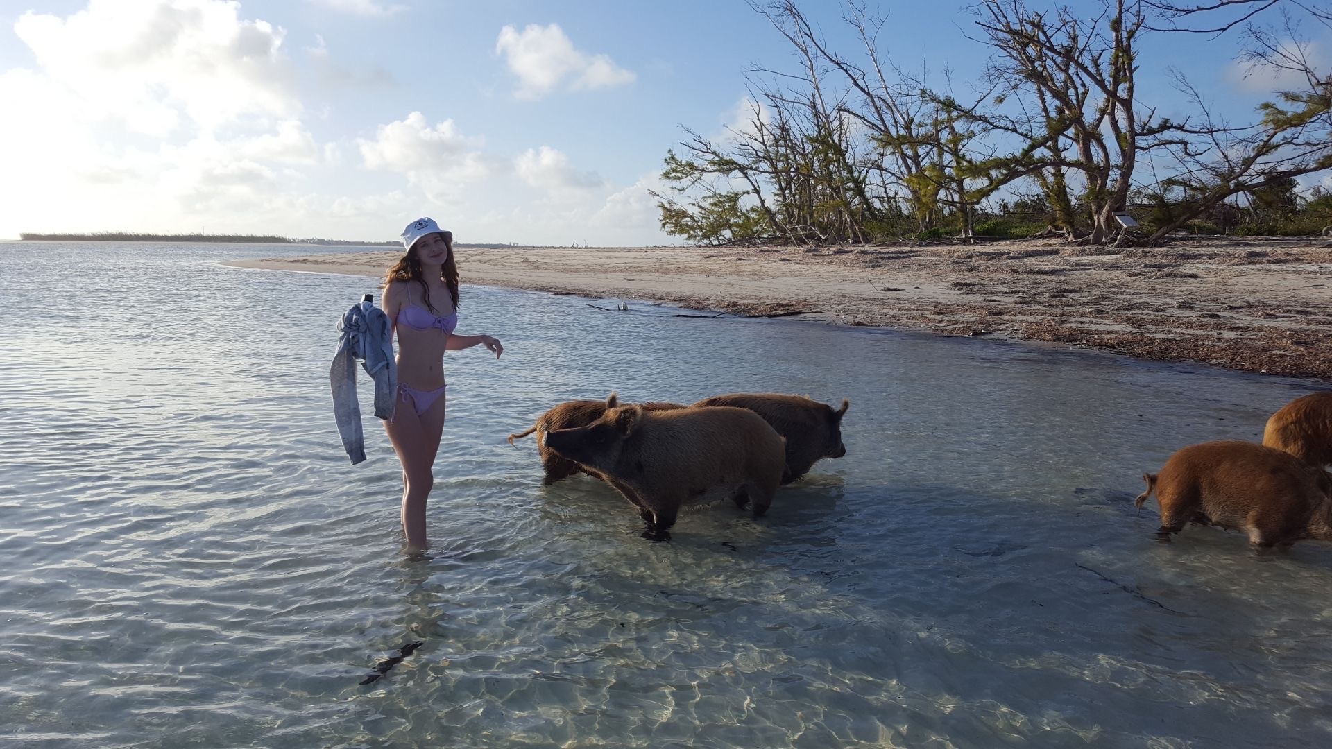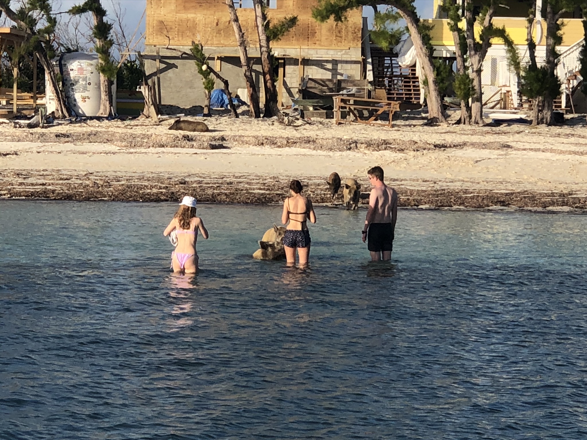 After diving, we headed to No Name Cay to feed the pigs. We havent been to this part of the abacos in years and were impressed with the growth of the pig population. They were some guys working on the restaraunt which wasnt there the last time we were here. They came out and requested some beverages and we gave them some cold Kalik to end their day.