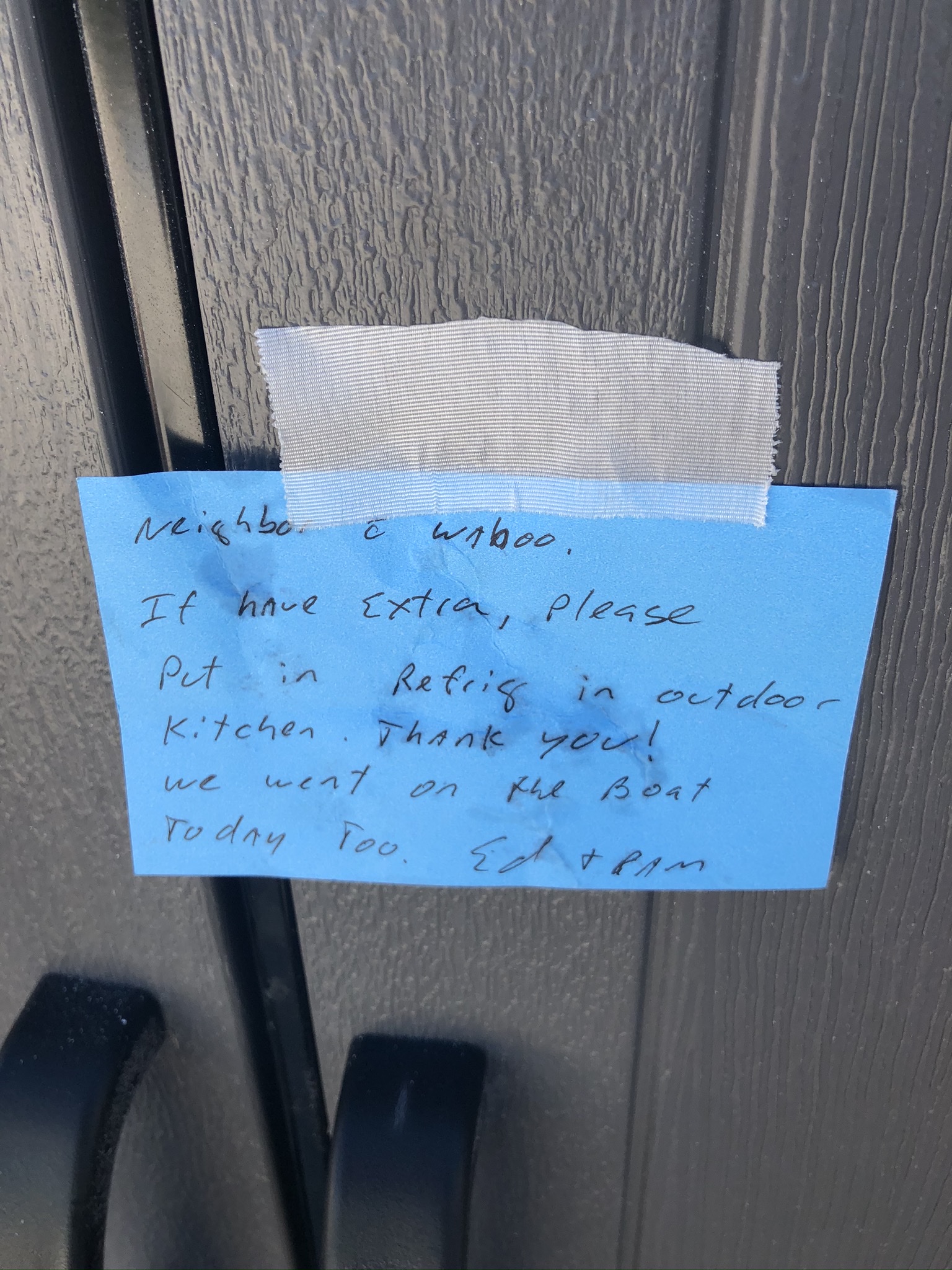 The neighbors to Coral Sands were medical staff that stayed during the hurricane. Their house was totally demolished and they were living out of a trailer. During John’s battle with the wahoo, the wahoo knicked his leg so we went next door to get it bandaged up. In return we left some Wahoo fillets for them.