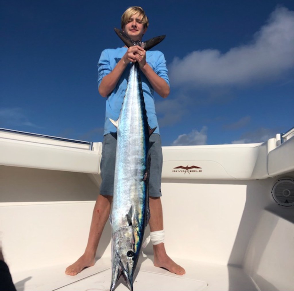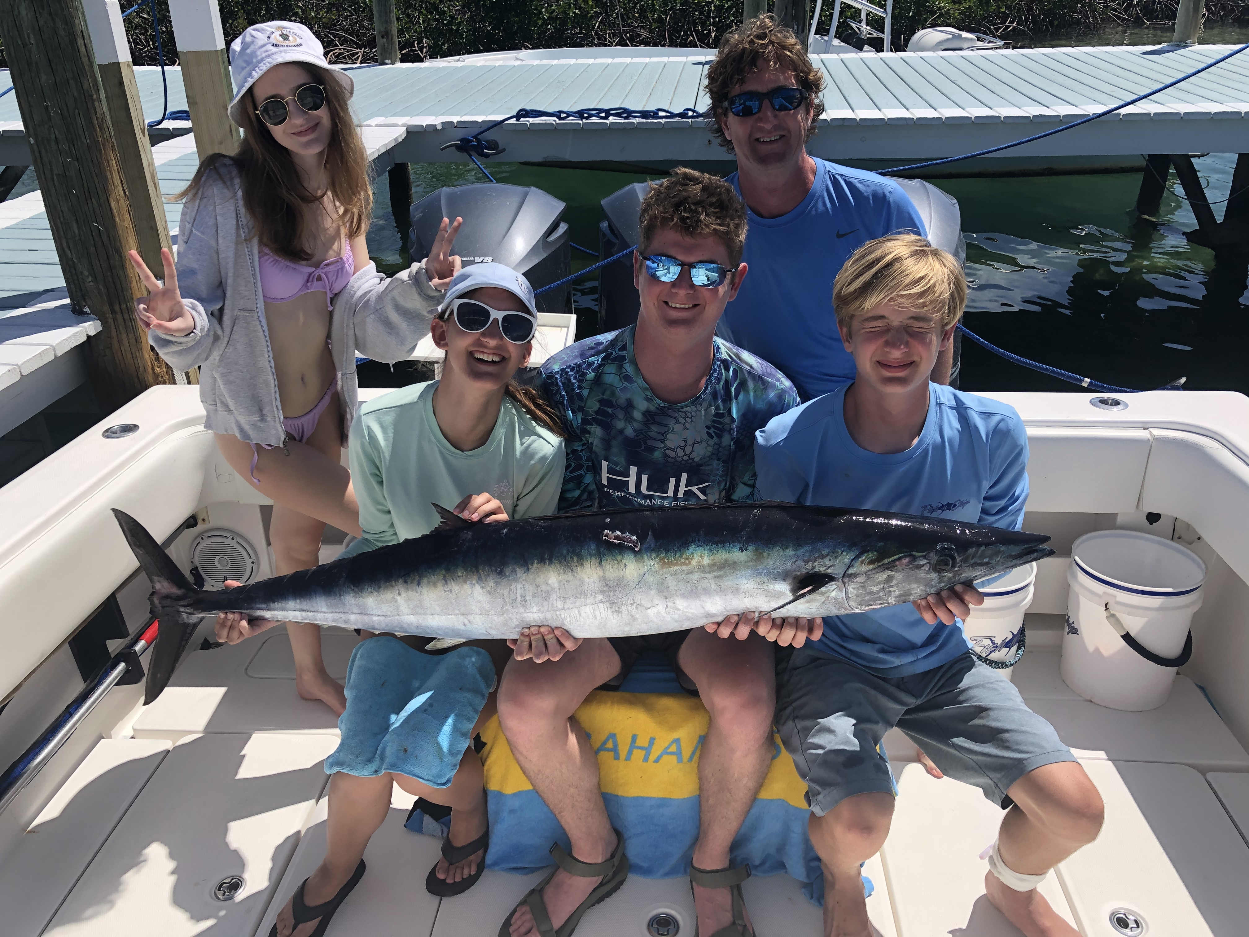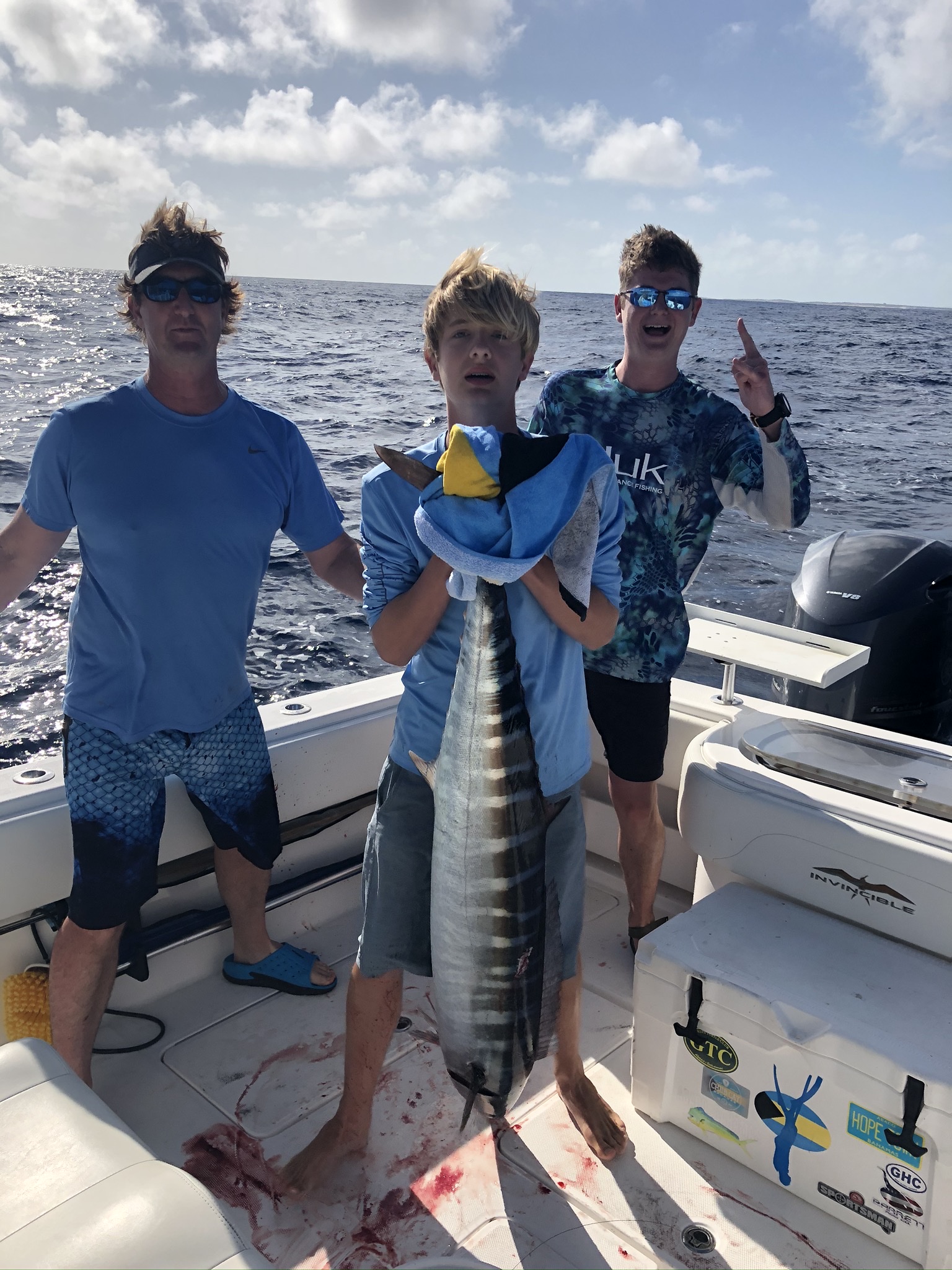 The next morning we headed out for some trolling with high hopes of dolphin. Instead of dolphin we landed this nice wahoo! We got lucky that he picked the only bait with wire in our spread. It was awesome to see him break the surface to eat the horse ballyhoo.